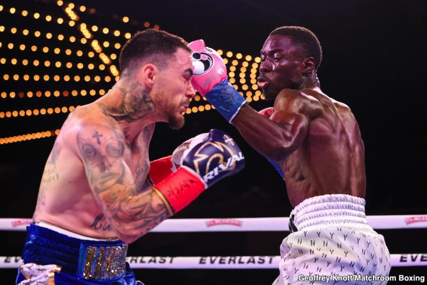 In George’s career-best win over Teofimo Lopez in 2021, he attacked relentlessly. Again, he didn’t do that against Hitchins, choosing to stay on the outside and eat jabs for eight rounds.